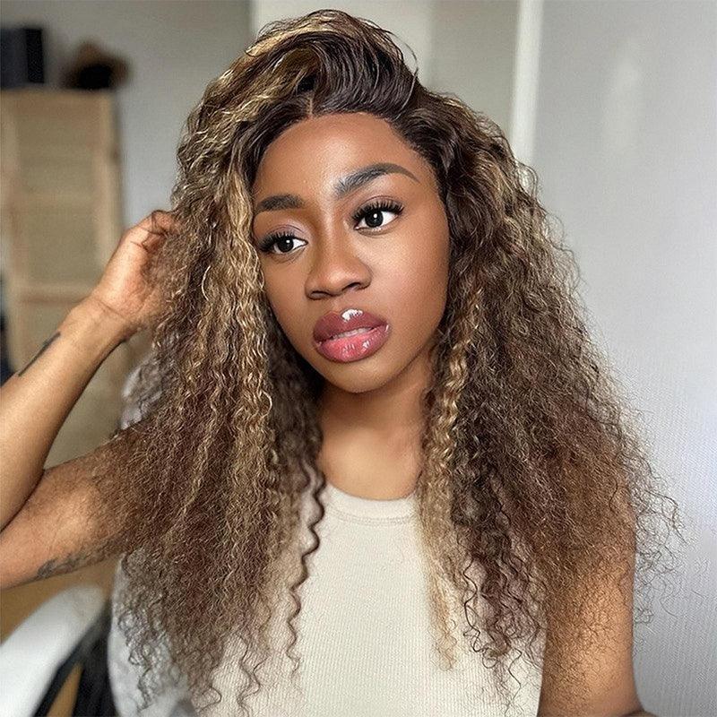 #4/27 Highlight Wig Human Hair Brazilian Deep Curly 13x4 Lace Front Human Hair Wigs- Regular price