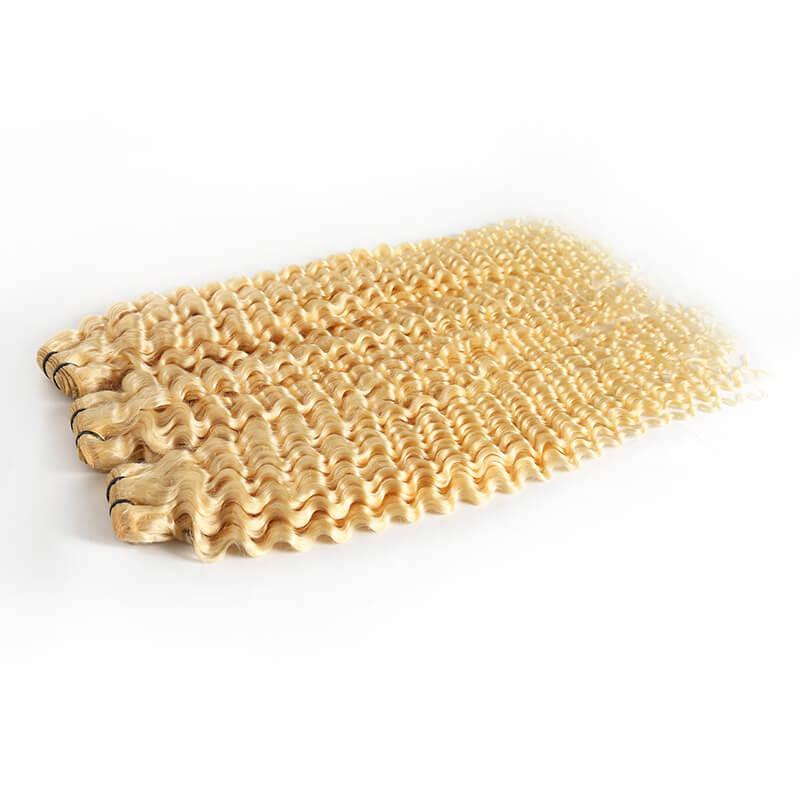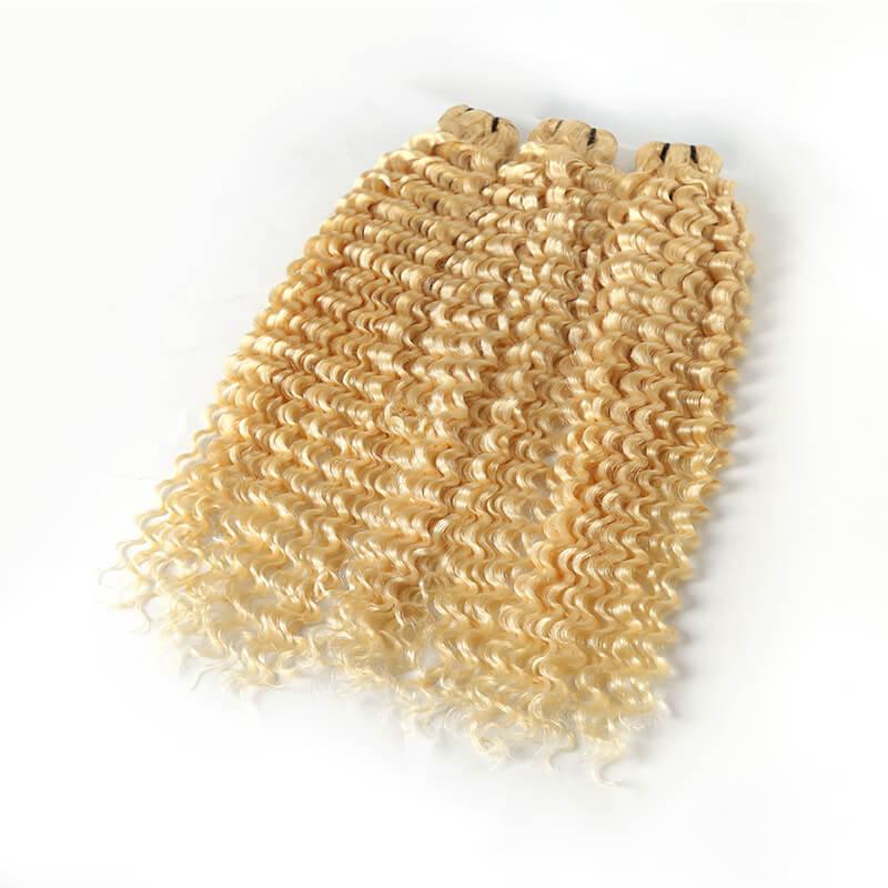 #613 Blonde Curly Deep Wave Hair Bundle Deal 100% Human Virgin Hair