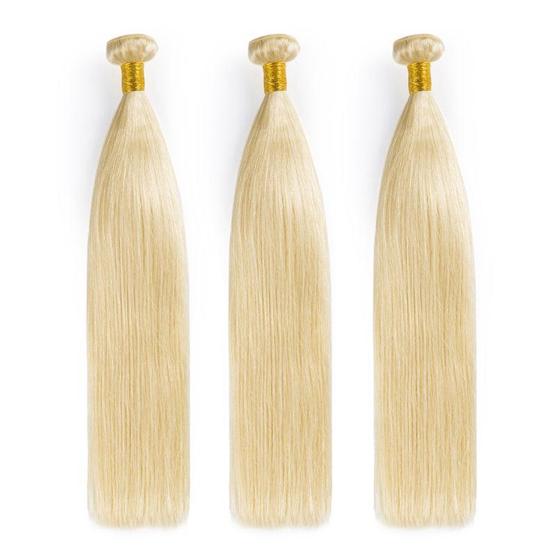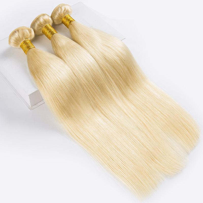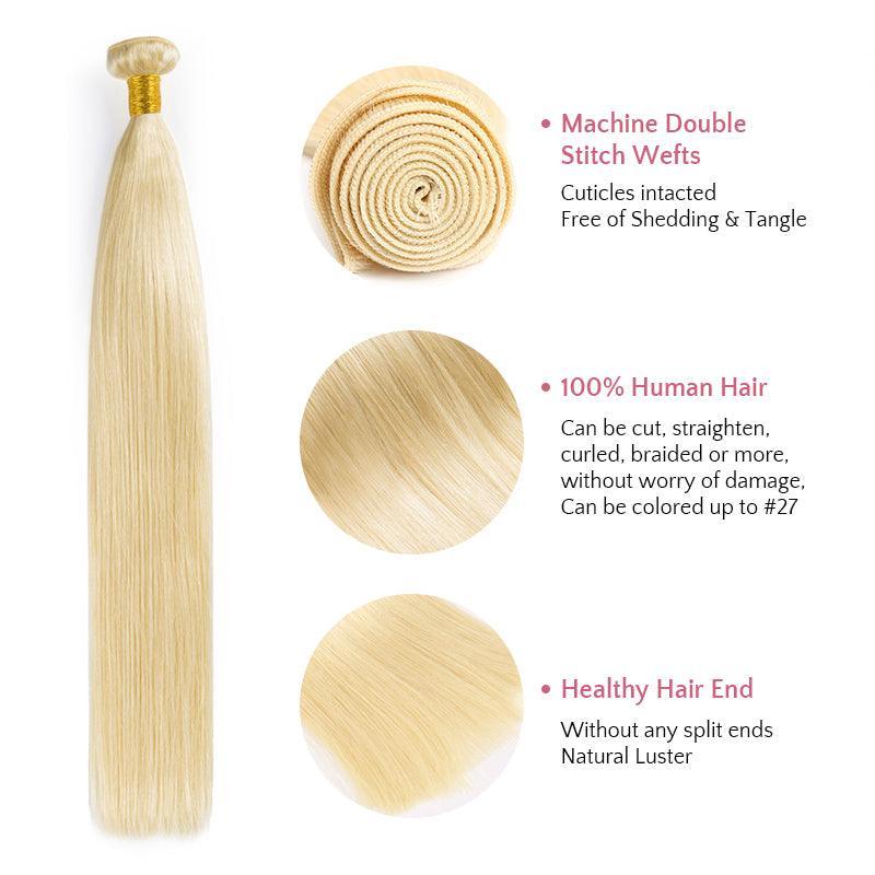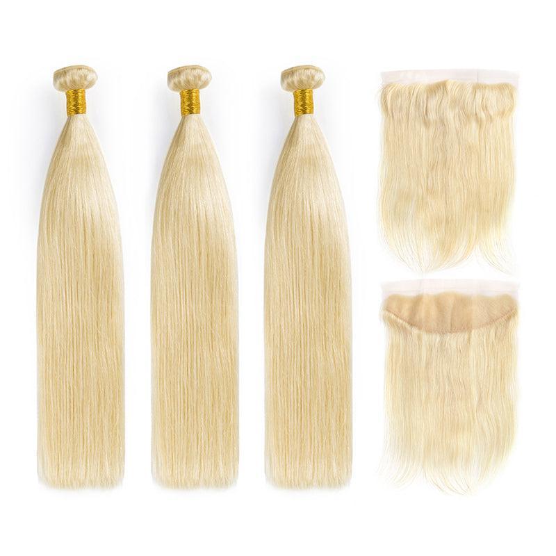 #613 Blonde Straight Virgin Human Hair Bundle Deal With Closure Frontal