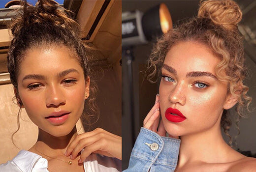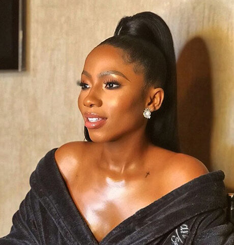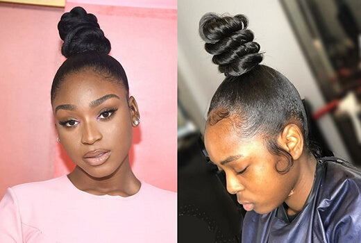 Il suffit de diviser vos cheveux en deux, puis de les tordre un peu, puis vous allez prendre les deux sections. Et enroulez-les simplement autour du chouchou. Jusqu'à ce que vous ayez un petit nœud supérieur.PERRUQUES DE CHEVEUX BRILLANTS