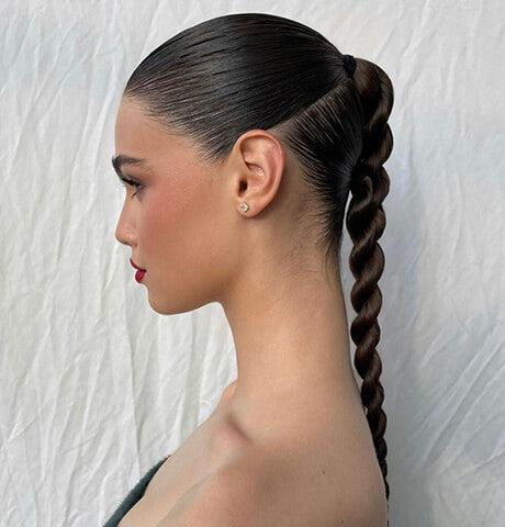 Tout ce que vous avez à faire est d'attacher vos cheveux sur le côté et de les enrouler à la base. Ensuite, prenez une section de l'intérieur de votre poney et tressez-la sans serrer. Vaporisez la tresse avec de la laque et laissez-la pendre.UNE COIFFURE ÉLÉGANTE