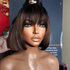 For Beginners Glueless Bob Human Hair Wig With Brown Highlights And Straight Bangs