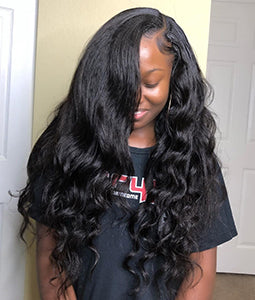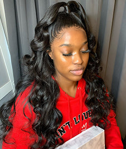 "Profitez de mon style de queue de cheval mi-haut-mi-bas, la qualité des cheveux est excellente pour personnaliser tous les looks souhaités. J'adore mon nouveau look de vague de corps."